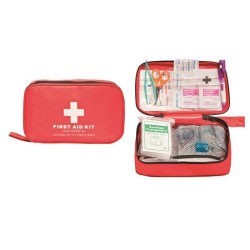 Περιγραφή : Φορητό φαρμακείο μεσαίου μεγέθους για αυτοκίνητο. Περιέχει τα εξής : Αυτοκόλλητα..